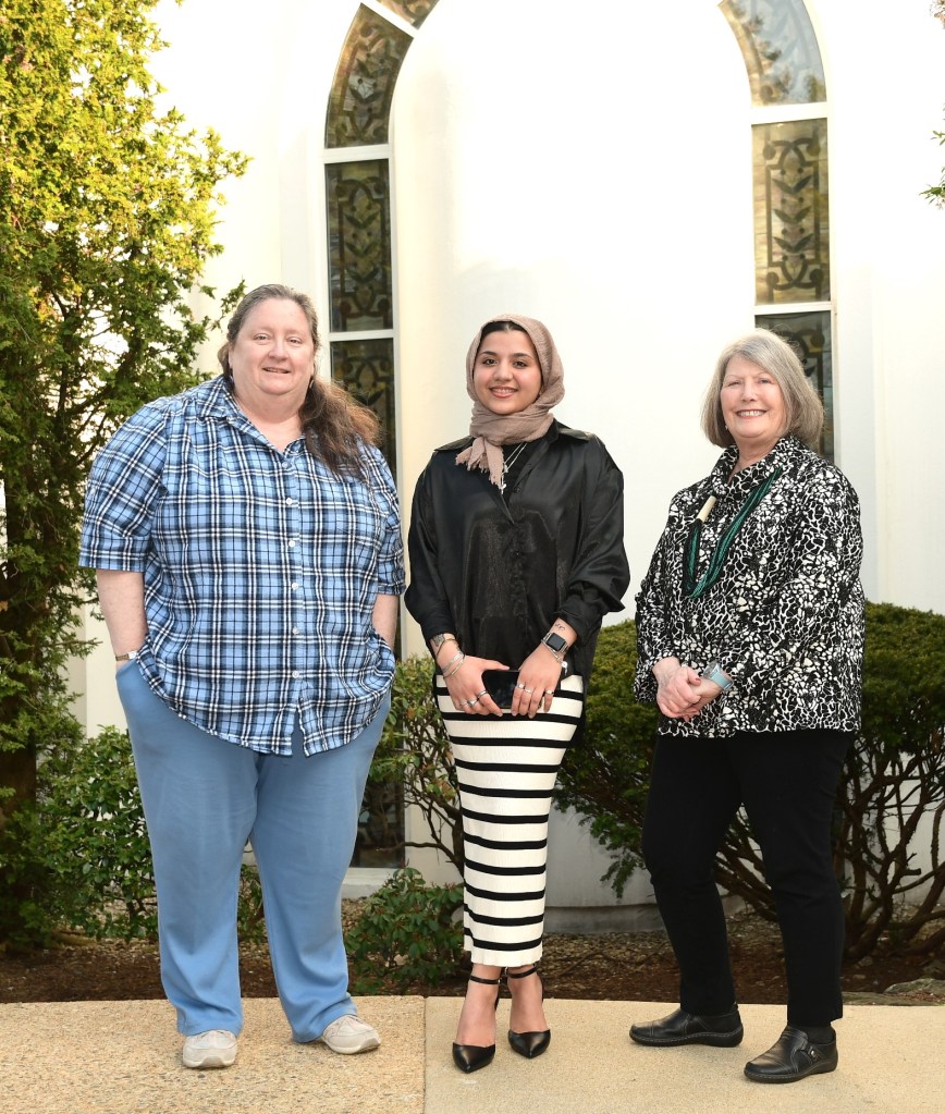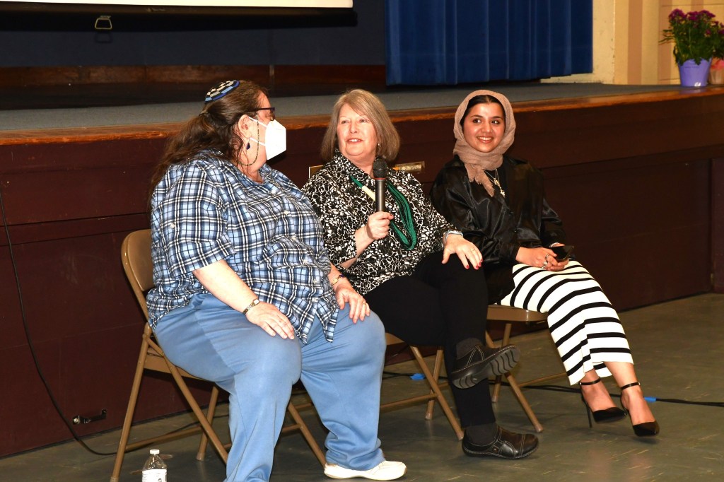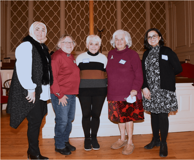 “I Am a Muslim Woman”. From left to right, Massoma Athar, Riman Dwiadam and Munise Ulker.Faith and FlowersMarilyn Cavanaugh, Moderator and Program Coordinator Our speakers from left to right; Liz Verity, Habiba Murjan, Reverend Laura Biddle and Rabbi Beth DavidsonThe guests enjoyed the program and the reception that followed..Leadership Committee! Ruth Kleinfeld, Munise Ulker, Marilyn Cavanaugh, Liz Verity, Olga Haveles, Jean Dickson, Masooma Athar. Photo by Janet Thornton.Masooma Athar, our MC for the evening. Photo by Janet Thornton.Kathy Malatras, Julia, ?, Veronica Molloy. . Photo by Janet Thornton.Jean Dickson, Lorinda Latva, Denise Forest. . Photo by Janet Thornton.Audience members participate. Photo by Janet Thornton.Audience members participate. Photo by Janet Thornton.Masooma Athar, Munaza Hassan, Eshel Shah. Photo by Janet Thornton.Rev. Carolyn Keilig: Christian Faith